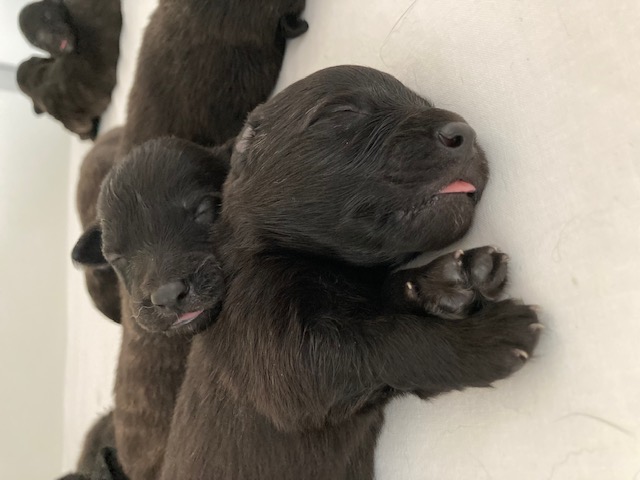 Daar zijn ze dan de pups van het "O" nest "v. d. Sylvester Stee", 1 dag oud, geboren op 28 jan 2023.