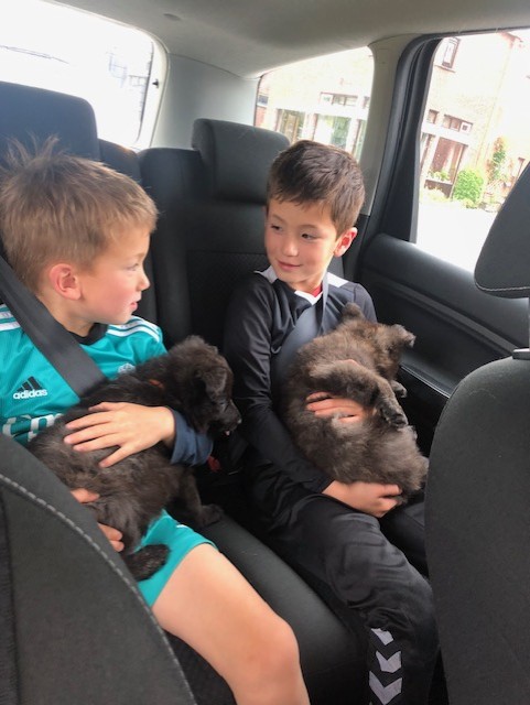 12 juni 2024, de pups zijn ingeent bij de dierenarts, altijd weer een hele verhuizing, hele familie gezellig mee