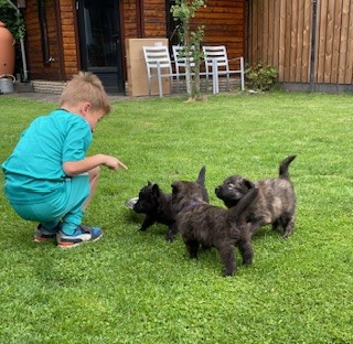 Oscar onze kleinzoon met de pups.